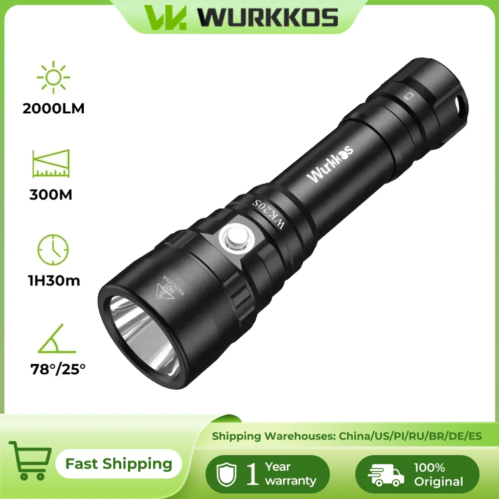 Wurkkos WK20S Krachtige duikzaklamp IPX8 Waterdicht Duiklamp Oplaadbaar Maximaal 2000 lumen SST40 HD LED 4 modi