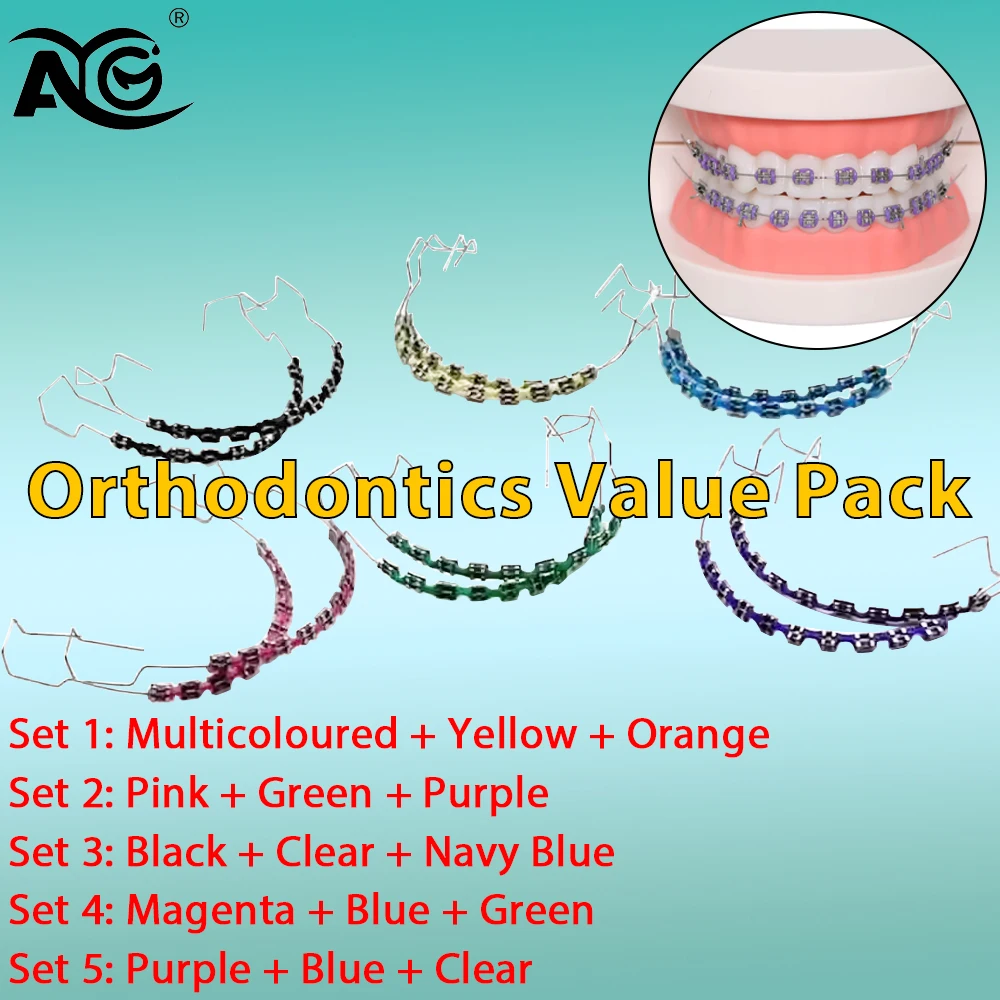 AG Fashion Braces 3 Paar Kleurrijke Tijdelijke Tanddecoratie Met Metalen Draden Metalen Beugel Orthodontische Ligatuur Bandjes