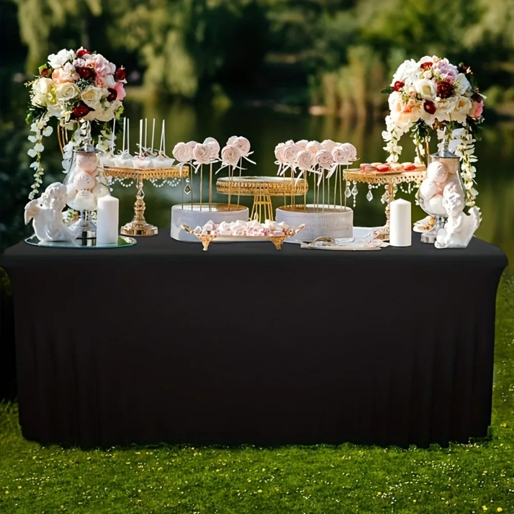 Eenvoudig effen kleurig spandex stretch tafelkleed rechthoekig elastisch tafelrokje stofdicht wasbaar tentoonstellingstafeldecoratie bruiloft