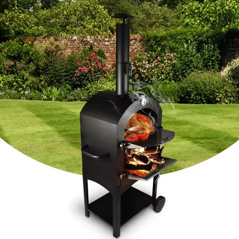 12 inch buitenpizzaoven op houtskool en brandhout, multifunctionele oven voor achtertuin, patio, tuin, koken, ingebouwde thermometer