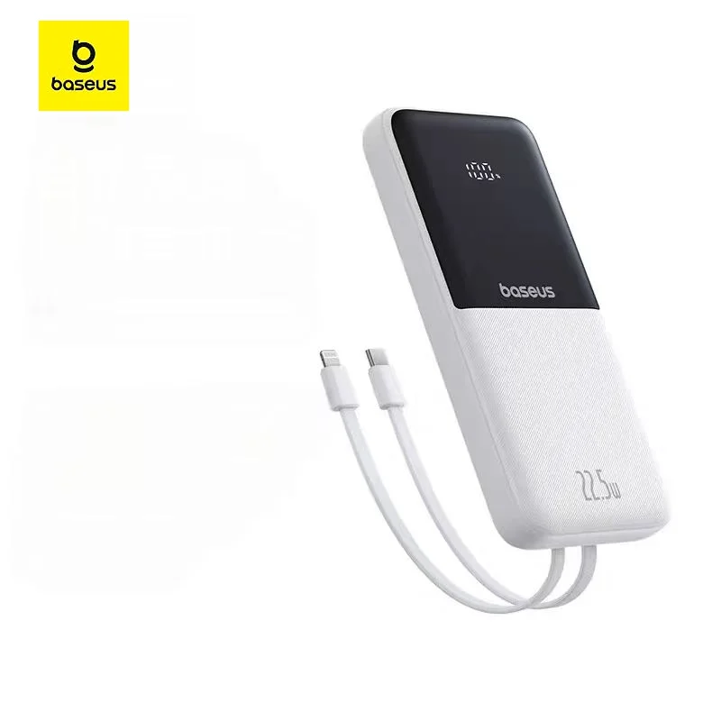 Baseus 22,5W 10000mAh snellaad-powerbank met ingebouwde Type C- en Lightning-kabel Draagbare externe batterijlader voor buitengebruik
