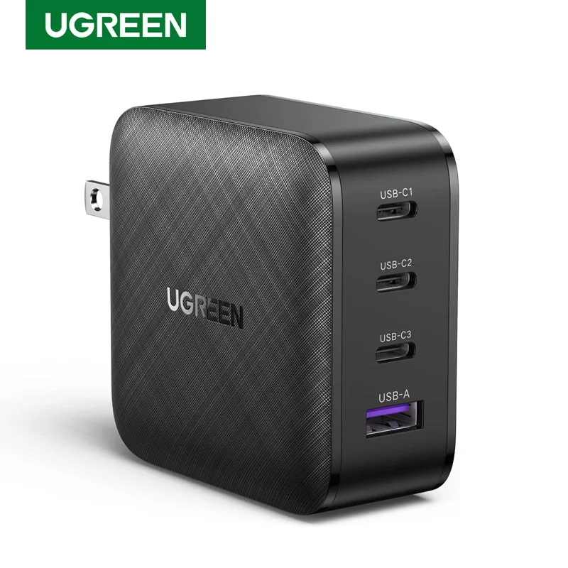 UGREEN 65W USB-C oplader met 4 poorten, USB-C voedingsadapter, GaN PD snelladen, reisoplader type C voor MacBook en iPad