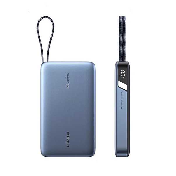 UGREEN Nexode Powerbank 25000mAh 165W Snelladen met ingebouwde USB-C kabel, 4-poorts laptop-oplader met twee kabels