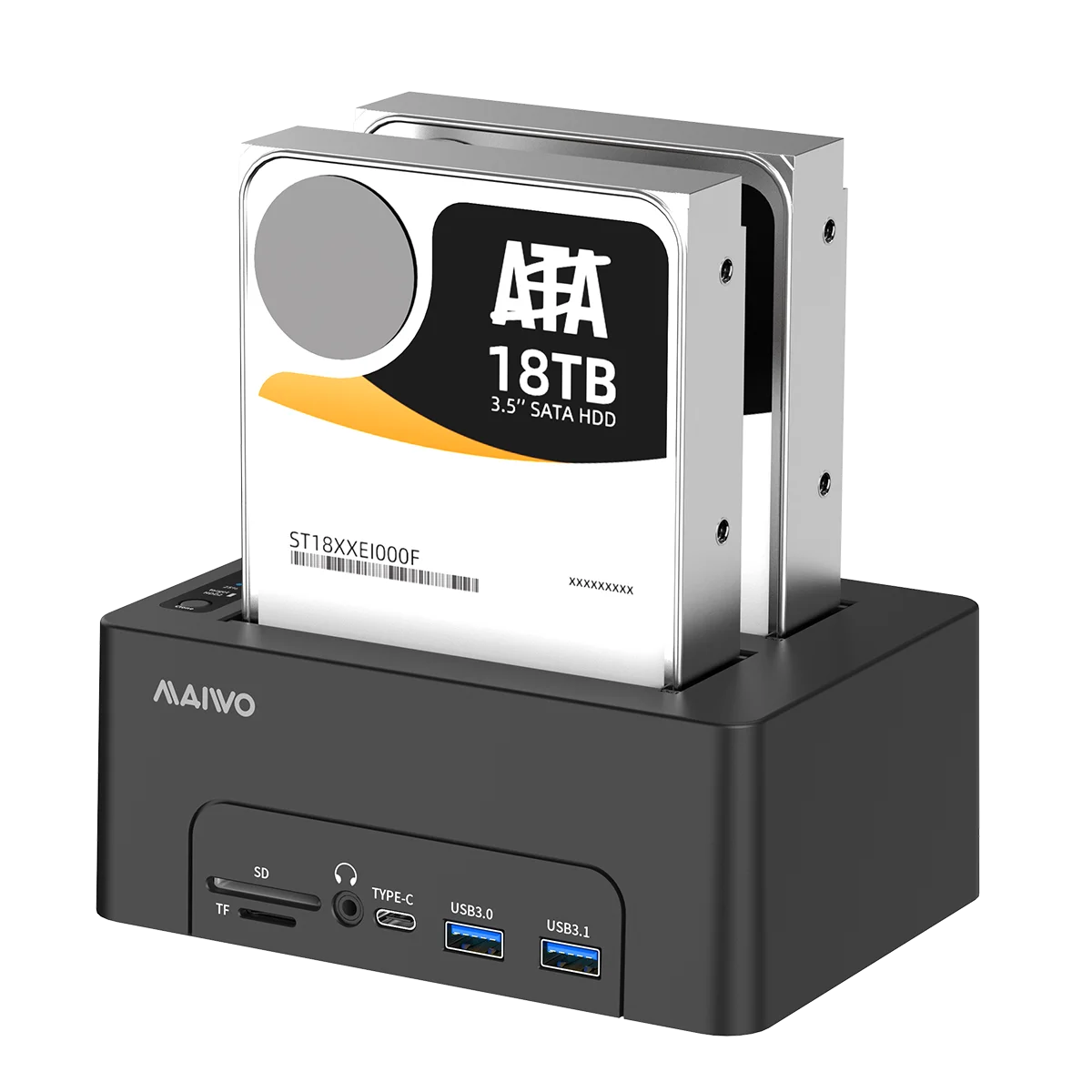 MAIWO K3082P 2.5"/3.5" SATA HDD/SSD dockingstation/duplicator, gereedschapsloze harde schijf/SSD kloon dock met HUB-functie