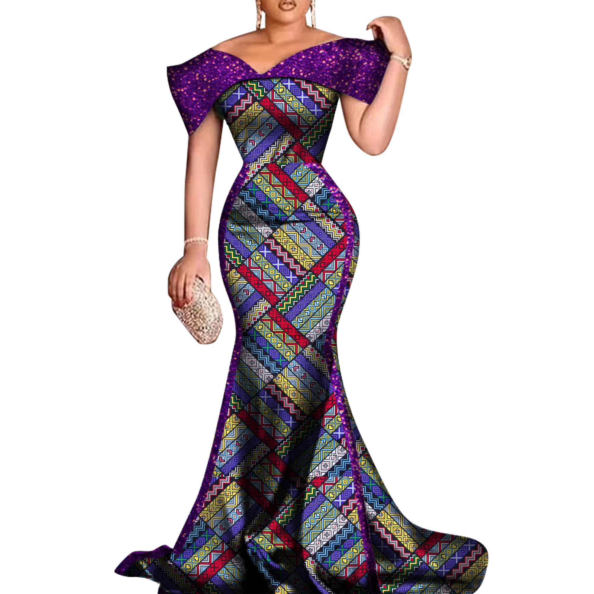 Nieuwe Custom Afrikaanse Avondjurken voor Vrouwen Bazin Dashiki Afrikaanse Print Katoen dames Zeemeermin Feestjurk WY8681