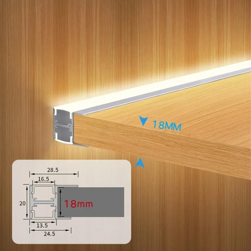 18mm Aluminium Led Profiel Voor Houten Kast Licht Dubbelzijdig Gloeiende Harde Bar Verlichting Kast Showcase Thuis Lineaire Decor lamp