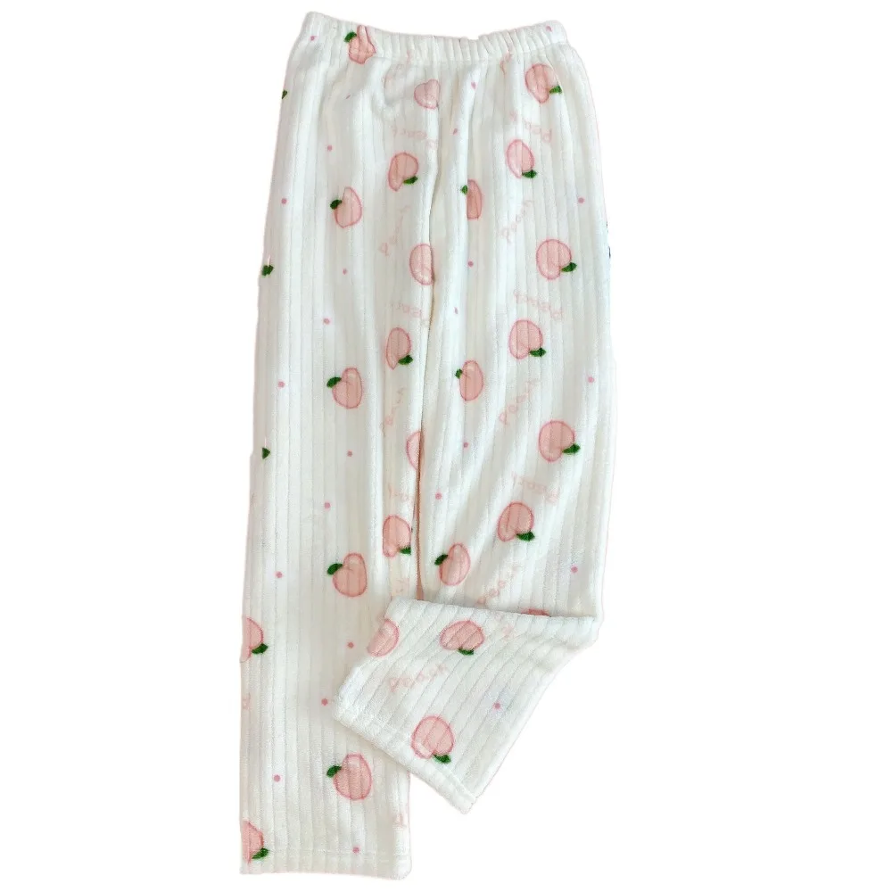Kawaiii Strik Perzik Pyjamabroek Losse Nachtkleding Bloem Fleece Broek Thuis Kleding Hoge Taille Coral Fleece Broek Nachtkleding