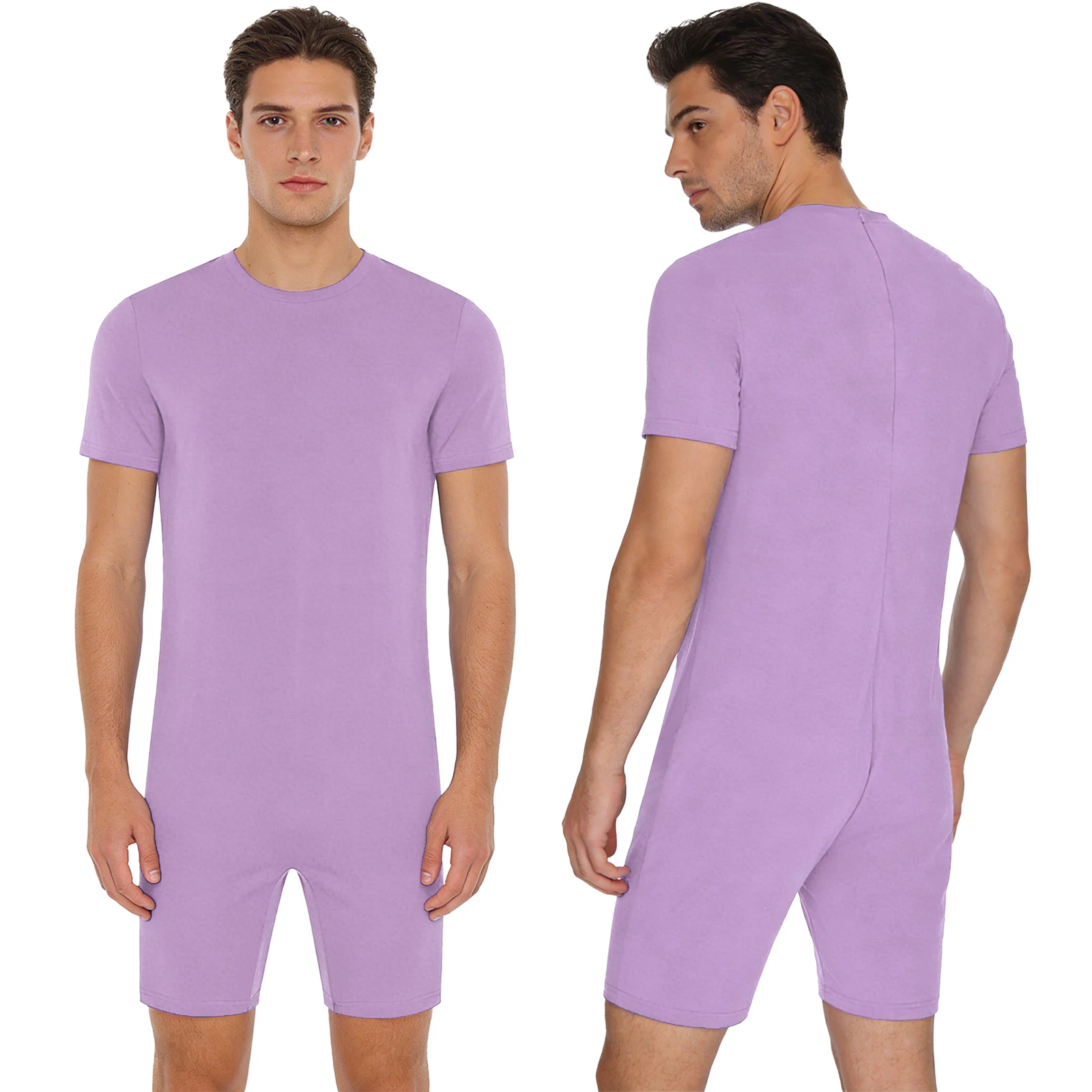 Volwassenen Anti-strip Adaptieve Jumpsuit Korte Mouw Korte Broek Rits Achteraan Eendelige Romper voor Ouderen en Patiënten met Speciale Behoeften