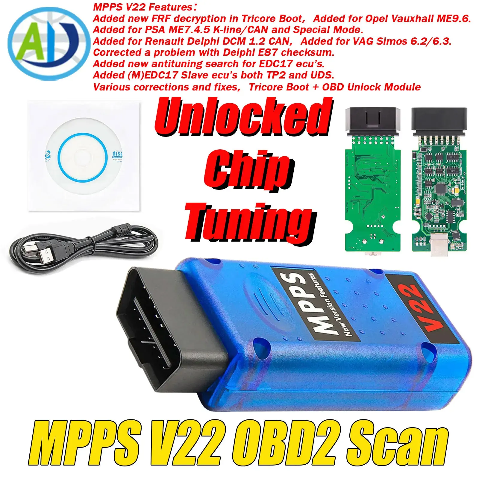 OBD2-scanner MPPS V22 Ontgrendeld HOOFD/Tricore/Multiboot MPPS V22 ECU Chiptuning ECU Flasher met Breakout Tricore-kabel MPPS V22