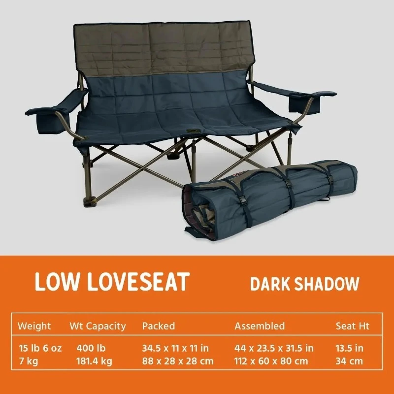 Dubbele 2-persoons opvouwbare campingstoel voor festivals, concerten, tailgates & stranddagen