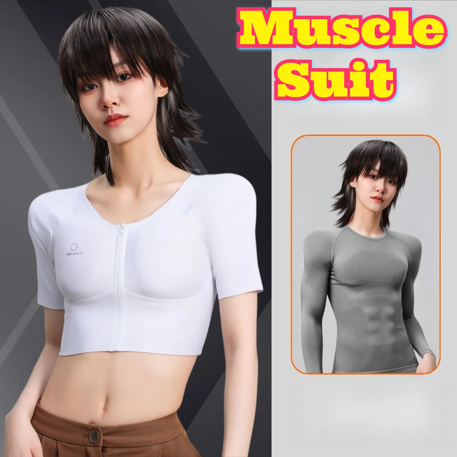 Spierpak Bodybuildingkostuum Korte mouw Naadloze borstbindende platte compressie Realistische spierverbetering Dunne inzetstuk