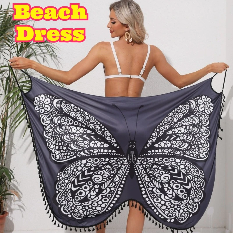 Dames Cami-strandjurk met vlinderprint Vakantie Zonbescherming Backless Tie Knot Fairy Seaside Outfit Ademend Lichtgewicht Nieuw