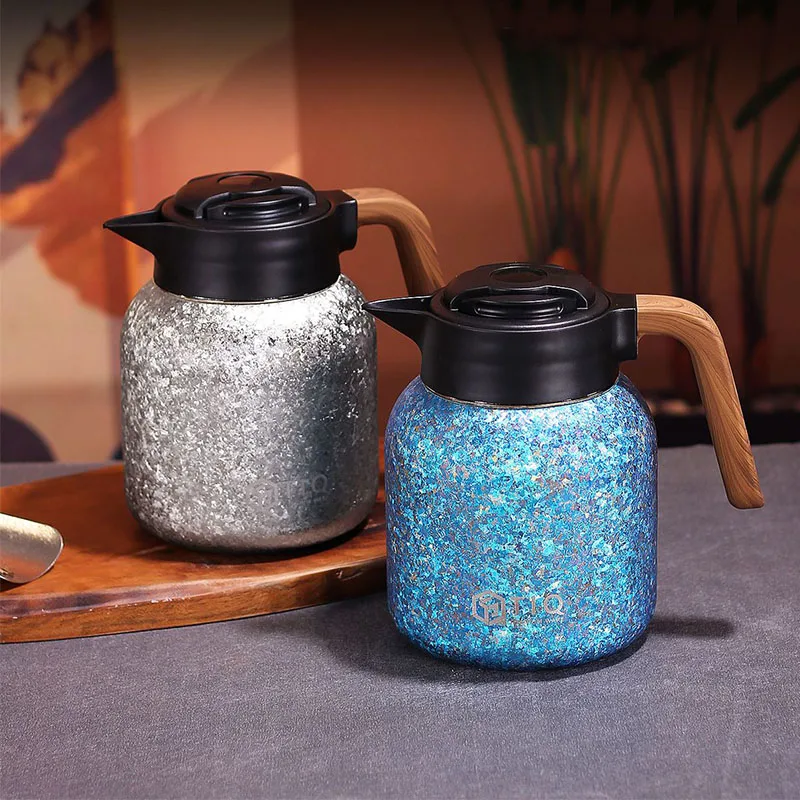 1,4L puur titanium thermische theepot met grote capaciteit en temperatuurweergave, dubbellaags vacuümthee-ei, draagbaar drinkgerei