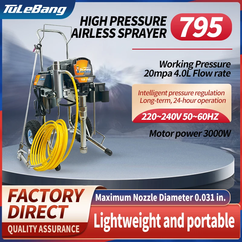 Hoge druk airless bespuitende machine 795 macht 3000W stroomtarief 4.0 L Geschikt voor de muur van het techniekhuis op kleine schaal, deur en de structuur van het vensterstaal het schilderen