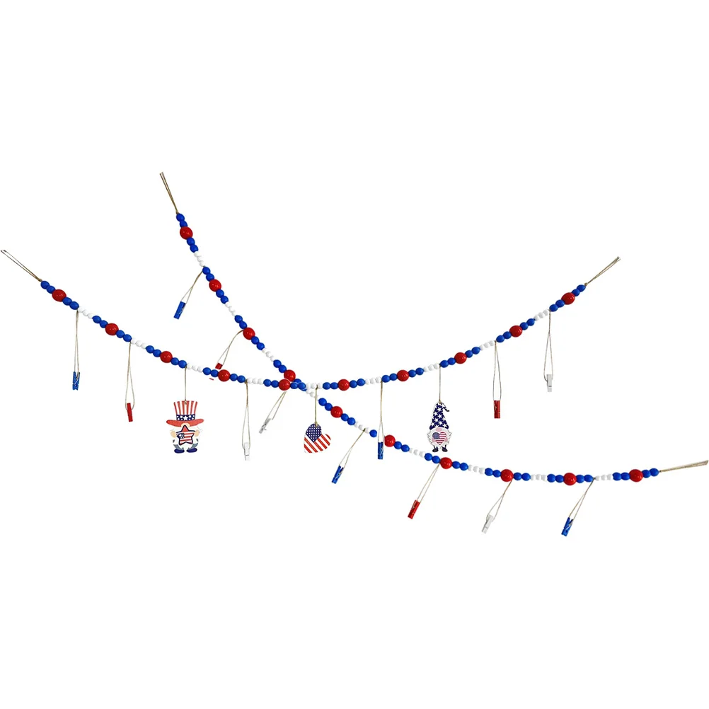2 stuks houten kralen guirlande fotoclips onafhankelijkheidsdag decor rustiek wandhangend ornament voor fotoweergave kralenkoord