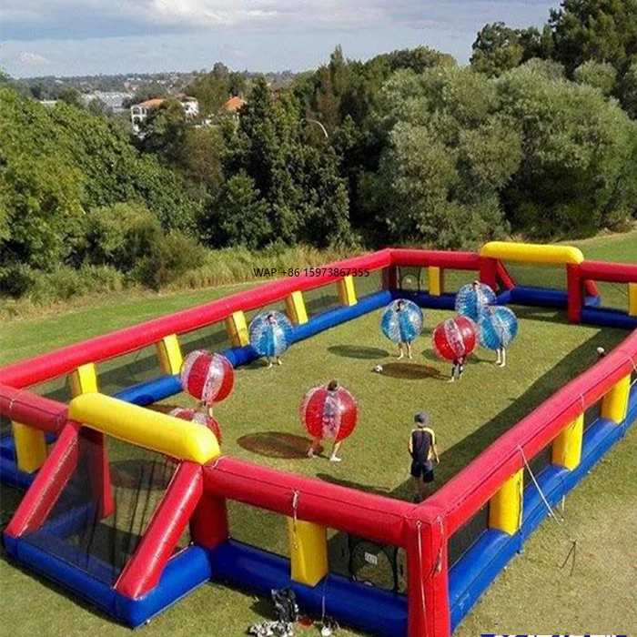 Professionele fabriek verkoopt opblaasbare voetbalvelden en voetbaltrainingsspelletjes voor spelers.