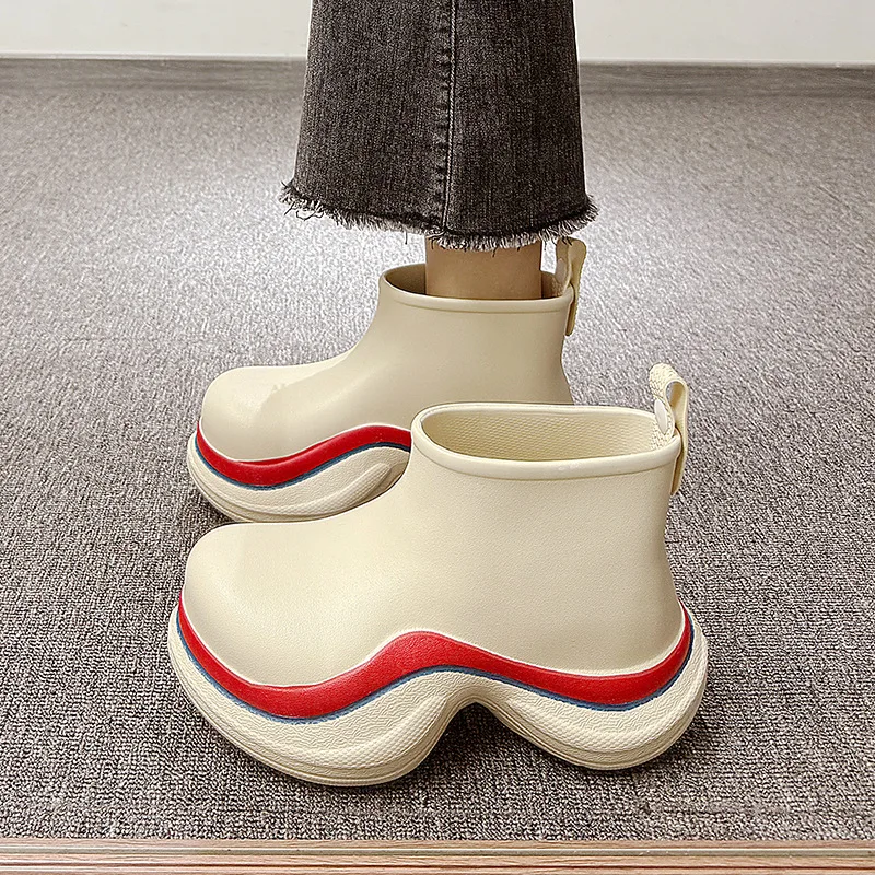 Nieuwe mode ronde neus platform regenlaarzen voor dames Comfortabele tweekleurige waterdichte schoenen Brede pasvorm overschoenen Dames EVA waterschoen