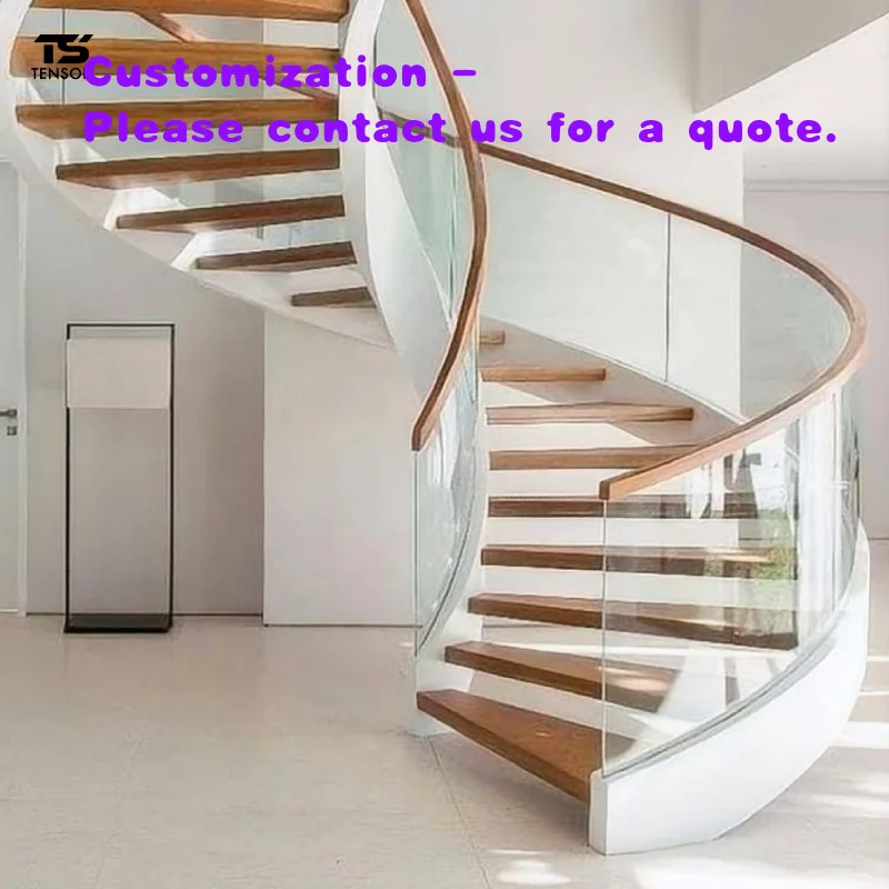 Op maat gemaakte moderne binnenhuis trap van roestvrij staal, duurzaam, decoratief, gebogen & geschikt voor appartementen, met glazen leuning