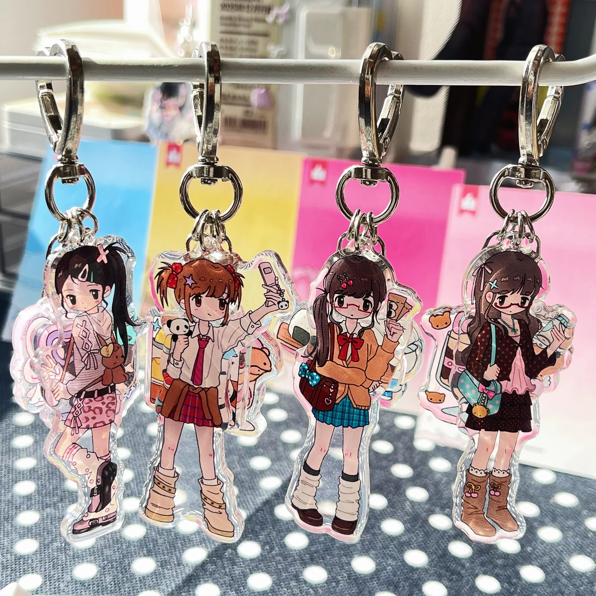 WAKAWAKA schattig meisje karakter acryl telefoon charme sleutelhanger sleutelhanger set ontwerper esthetische mobiele decoratieve hangende ornament