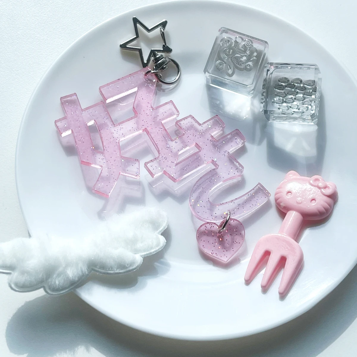WAKAWAKA Good Luck acryl sleutelhanger sleutelhanger telefoon charme aangepaste tekst ontwerp voor rugzak sleutels notebook en telefoon decoratie