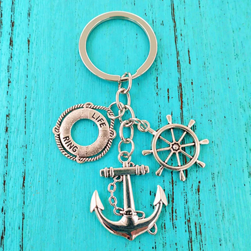 1PC trendy sleutelhanger legering schip anker Thallium reddingsboei sleutelhanger met coole charme, decoratieve accessoire voor tassen en rugzakken cadeau