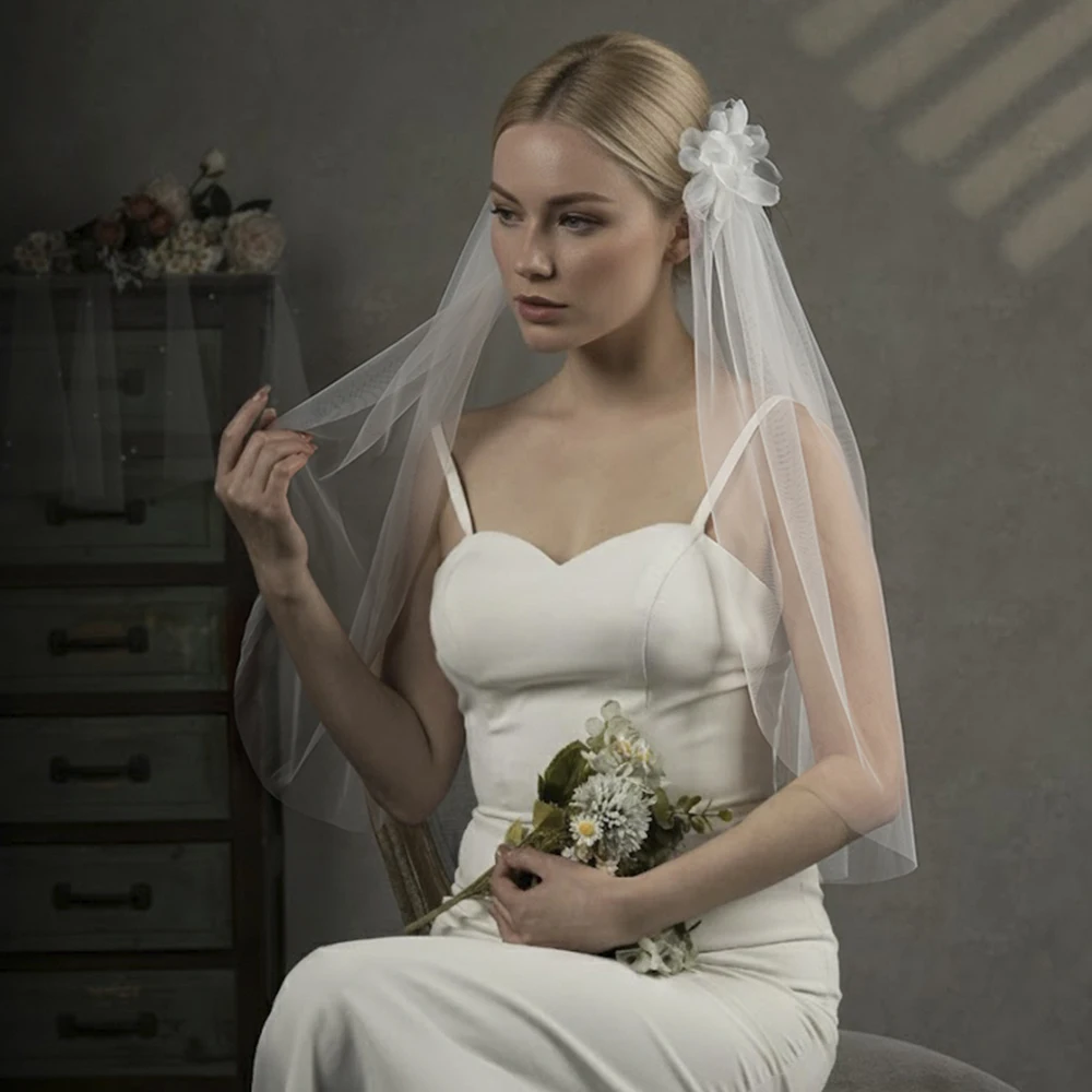 Wit Ivoor Elegante Bruidssluiers 2 Lagen Met Kam Gesneden Rand Zacht Net Bruidssluier Trouwaccessoires Veu De Noiva