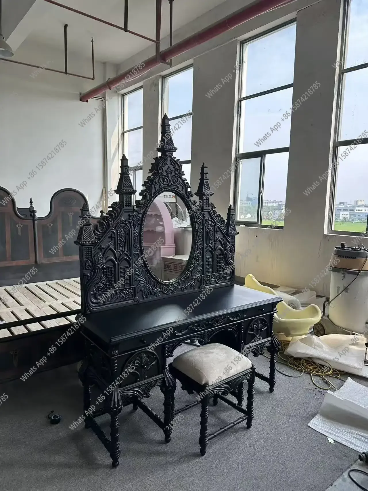 Hof zwarte make-up tafel retro massief houten dressoir Frans kasteel handgemaakte set designerstijl