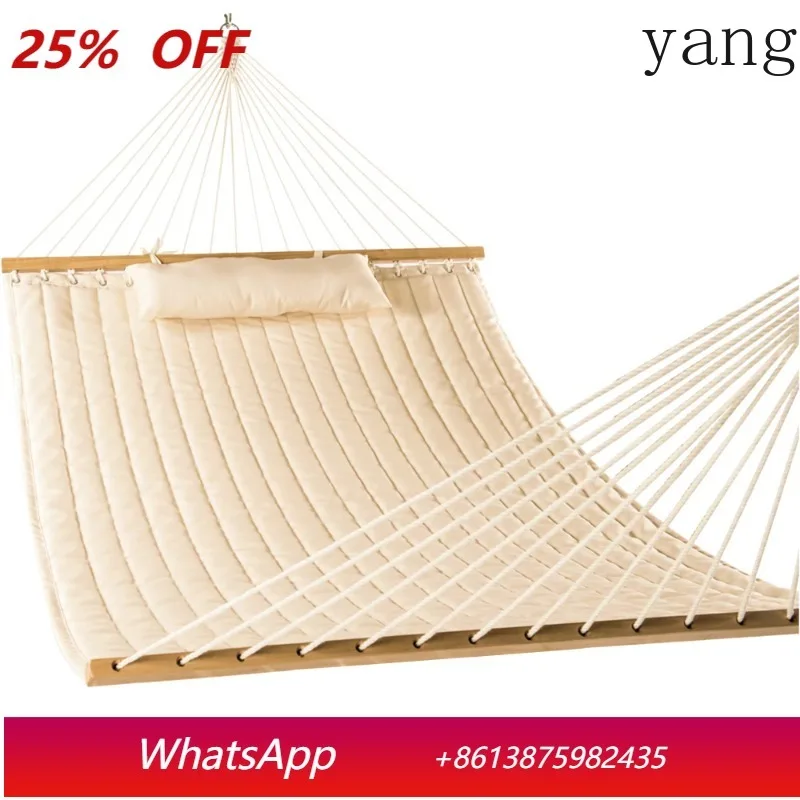 12 FT dubbel gewatteerde hangmat van stof met spreidstokken en afneembaar kussen, 2 personen, voor buiten, patio, achtertuin