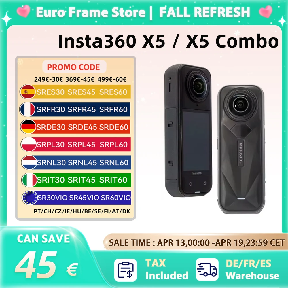 Insta360 X5 Actiecamera 2025 Nieuwe 8K 30fps Vervangbare lenzen AI Chip Superieure Low Light Mins Run Life Insta X5