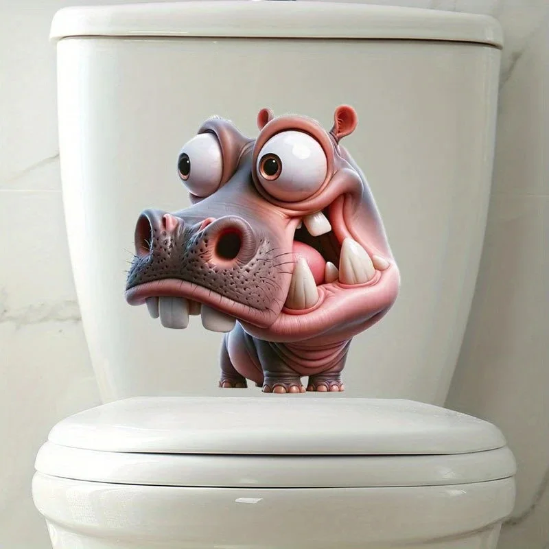 MT1160 # Grappige nijlpaard toiletdeksel sticker - waterdichte zelfklevende verwijderbare badkamer sticker, grillige cartoon nijlpaard sticker
