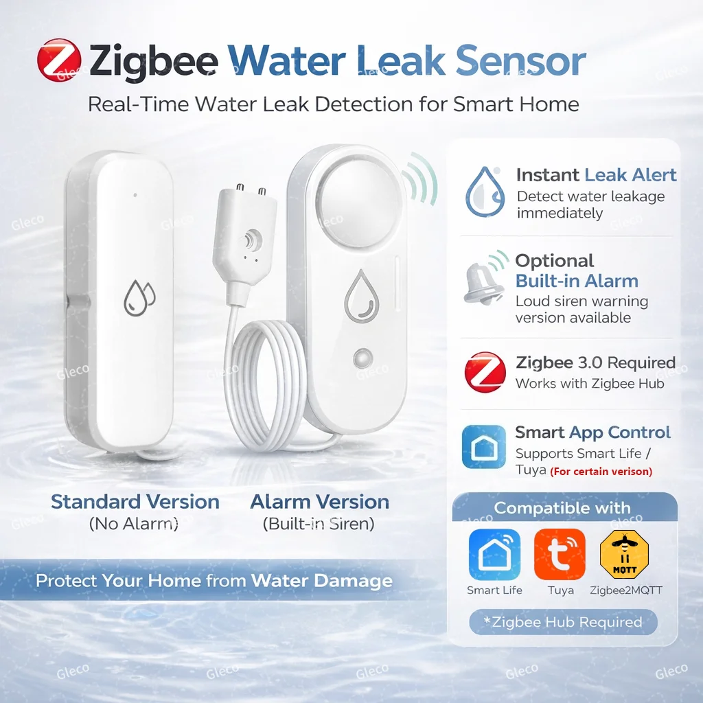 Haozee Smart Zigbee Waterleksensor Overstromingslekkage Detector 110dB Geluidsalarm Met Sonde Ondersteuning Home Assistant Zigbee2MQTT
