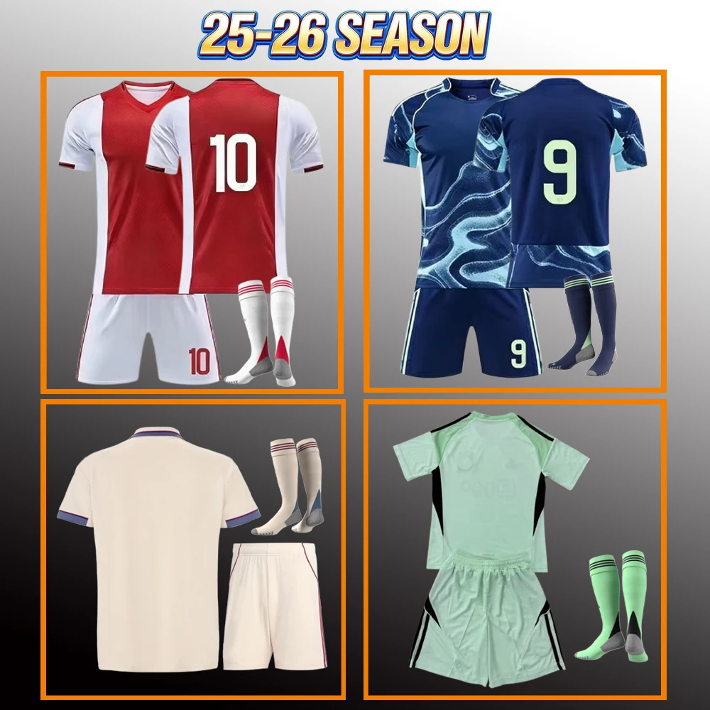 AjaxES Voetbalshirt Set 2025/2026, op maat gemaakt voetbaltenue voor kinderen/volwassenen, hoge kwaliteit