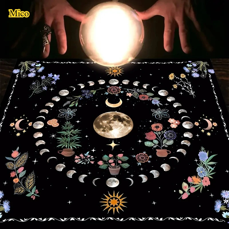Geüpgradede dikke korte pluche -75x75cm Moonlight Tarot kaartentafelkleed, altaar, hekserij en astrologie decoratieve kaartmat