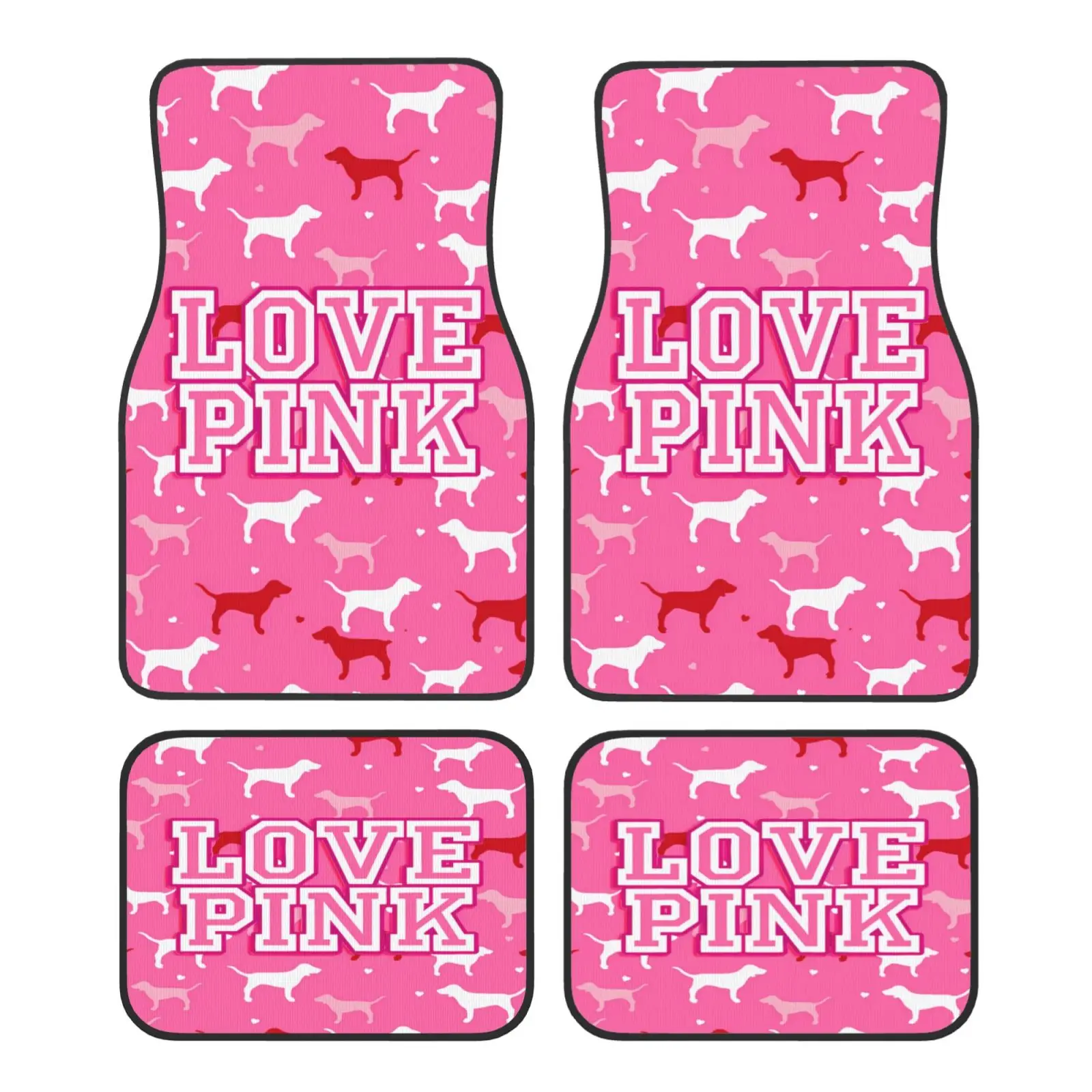 Liefde Roze Hond Hart Patroon Serie Print Auto Tapijt Vier Seizoenen Voertuig Tapijt Duurzaam Antislip Volledige Dekking Matten Gemakkelijk schoon te maken