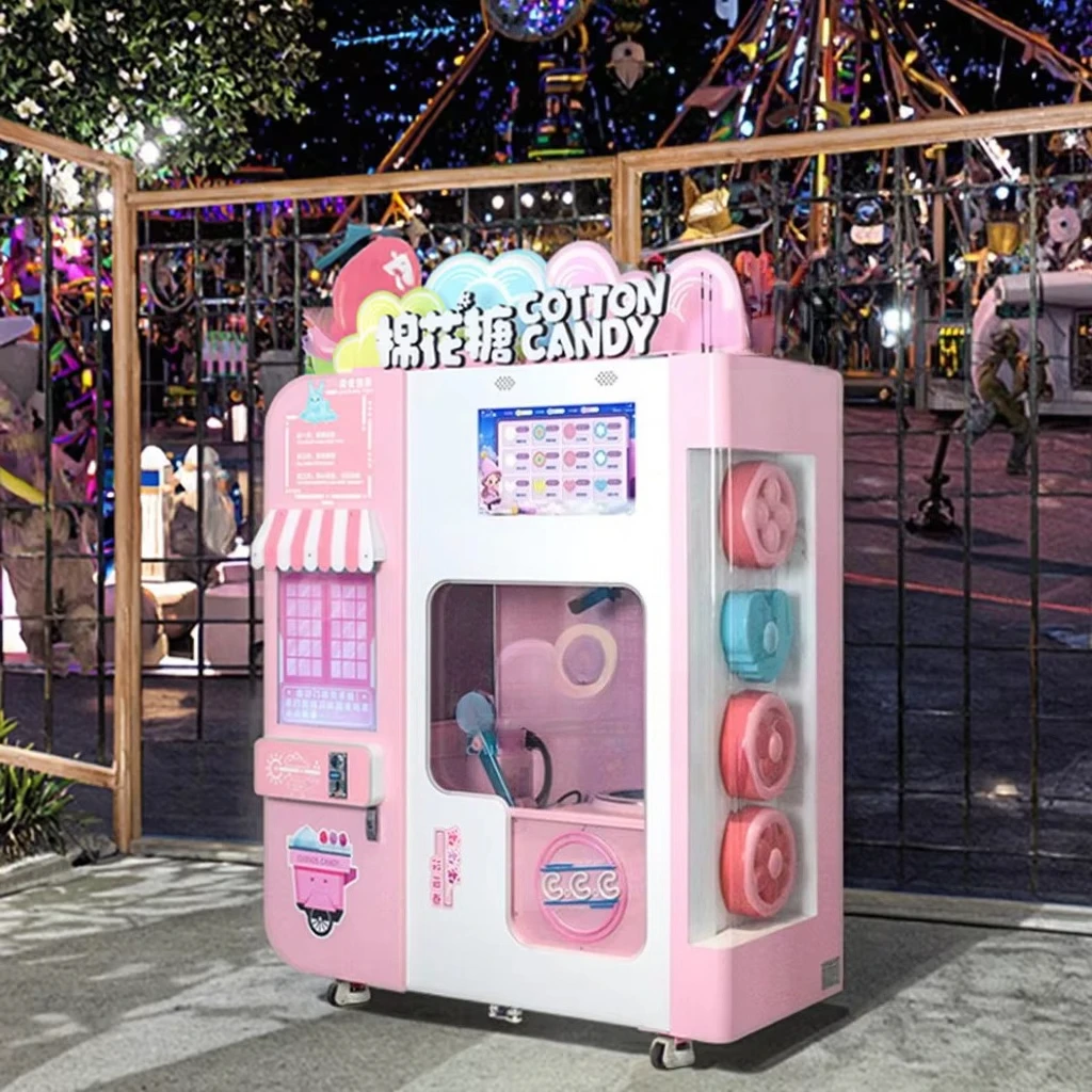 Volledig geautomatiseerde slimme suikerspinkiosk met digitaal touchscreen, nieuwstaat - voor buitenbedrijven met zelfbediening