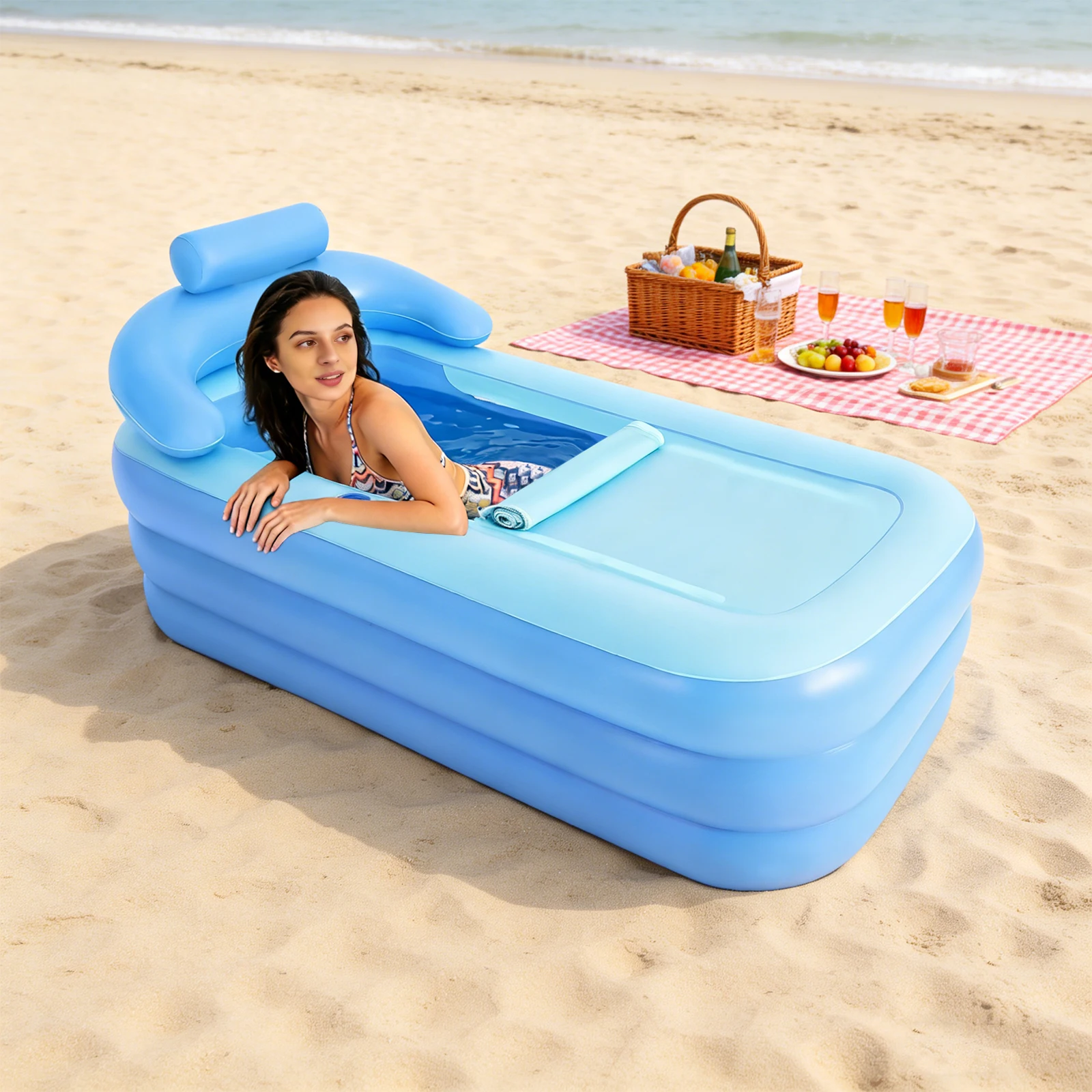 Draagbare opblaasbare badkuip, opvouwbare shampoo-stoel met bubbelmat, badkuip voor volwassenen voor het baden en spa-relaxatie 160*84*64 cm