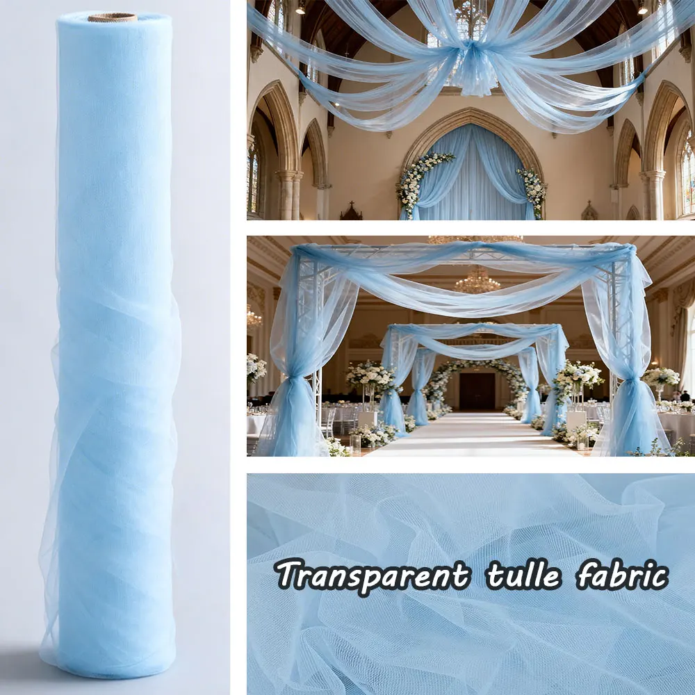 Lichtblauwe doorschijnende tulerol, meerdere maten beschikbaar, perfect voor bruiloftsboog, feestachtergrond, babyshower & festivaldecoratie