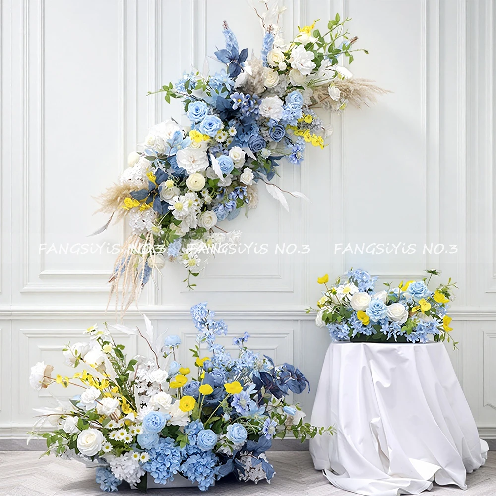 Blauw Gele Roos Pioen Bloemstuk Bruiloft Tafeldecoratie Achterwand Boog Hangende Bloem Bloemrij Vloer Bloemstuk Feest Evenement Accessoires