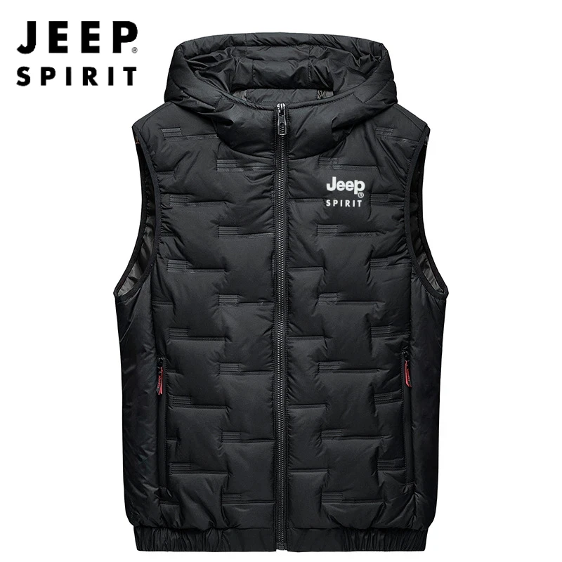 Jeep Spirit Herenvest Winddicht Warm Herfst Winter Kleurblokken Vest met capuchon Casual modekleding