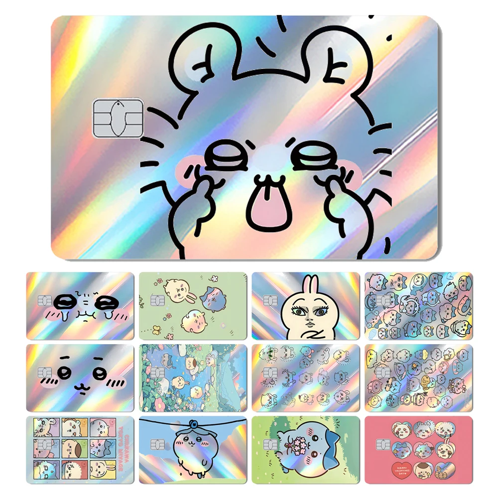 Magische Haai Schattige Cartoon Meme Konijn Kat Holografische Glanzende Laser Front Sticker Film Skin voor Debit Credit Card