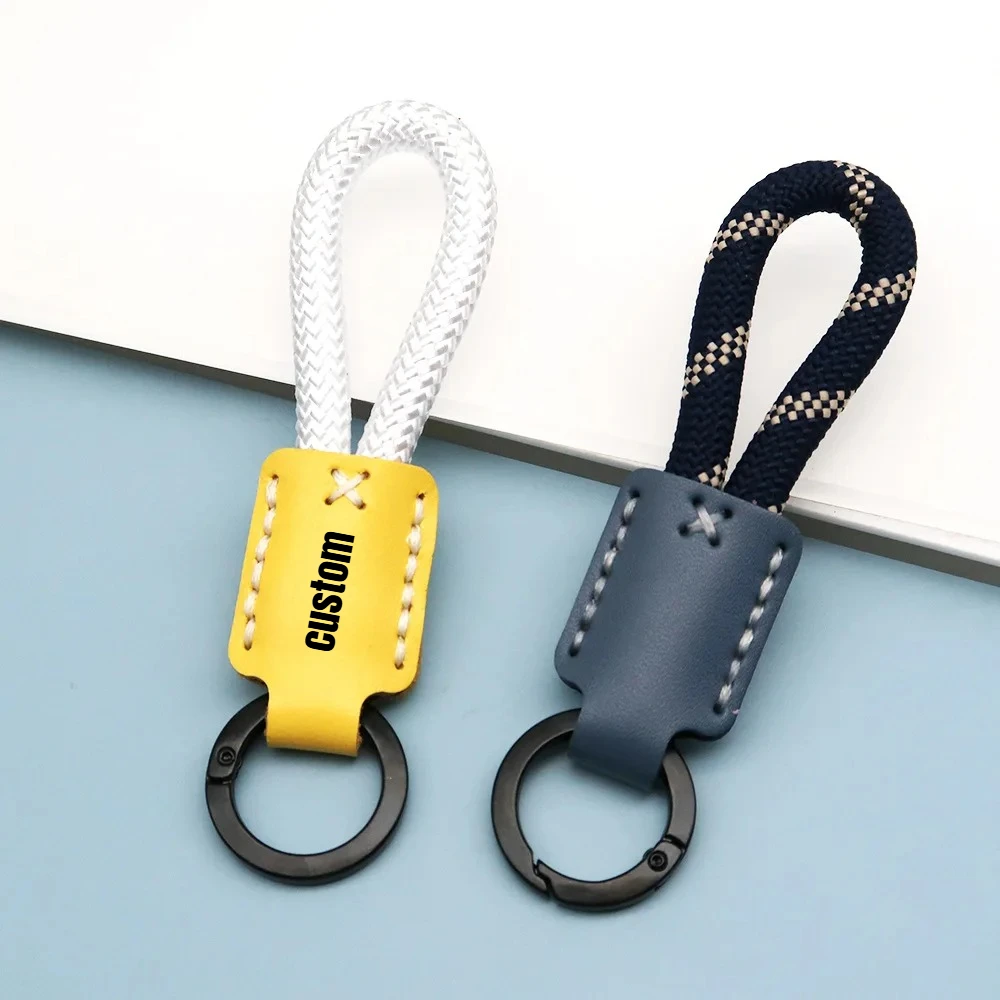Aangepaste logo schattige astronaut gevlochten touw lederen metalen sleutelhanger mannen vrouwen sleutelhanger laser personaliseren naam tas autosleutelhanger ring
