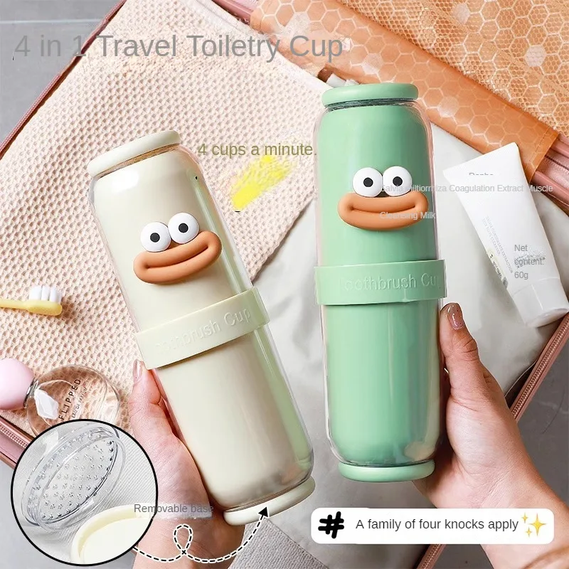 Droge en natte scheiding beker voor mondwater, draagbare wasbeker voor gezinnen op reis, beker voor het poetsen van de tanden, schattige tandenborstelbeker, vier-in-één.