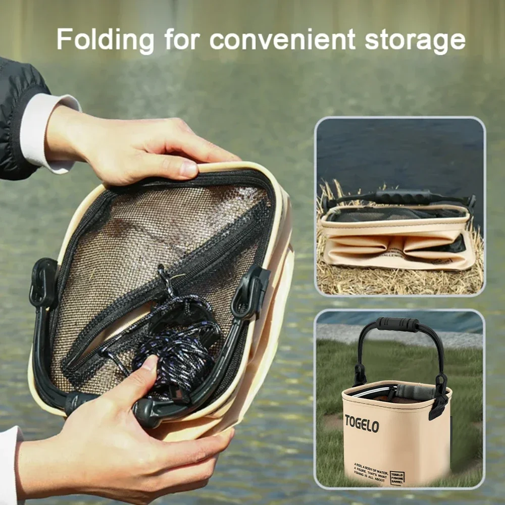 Outdoor visemmer Opvouwbaar en draagbaar net Live Fish Bucket EVA met touw Wateremmer voor wildvissen Huishoudelijke emmer