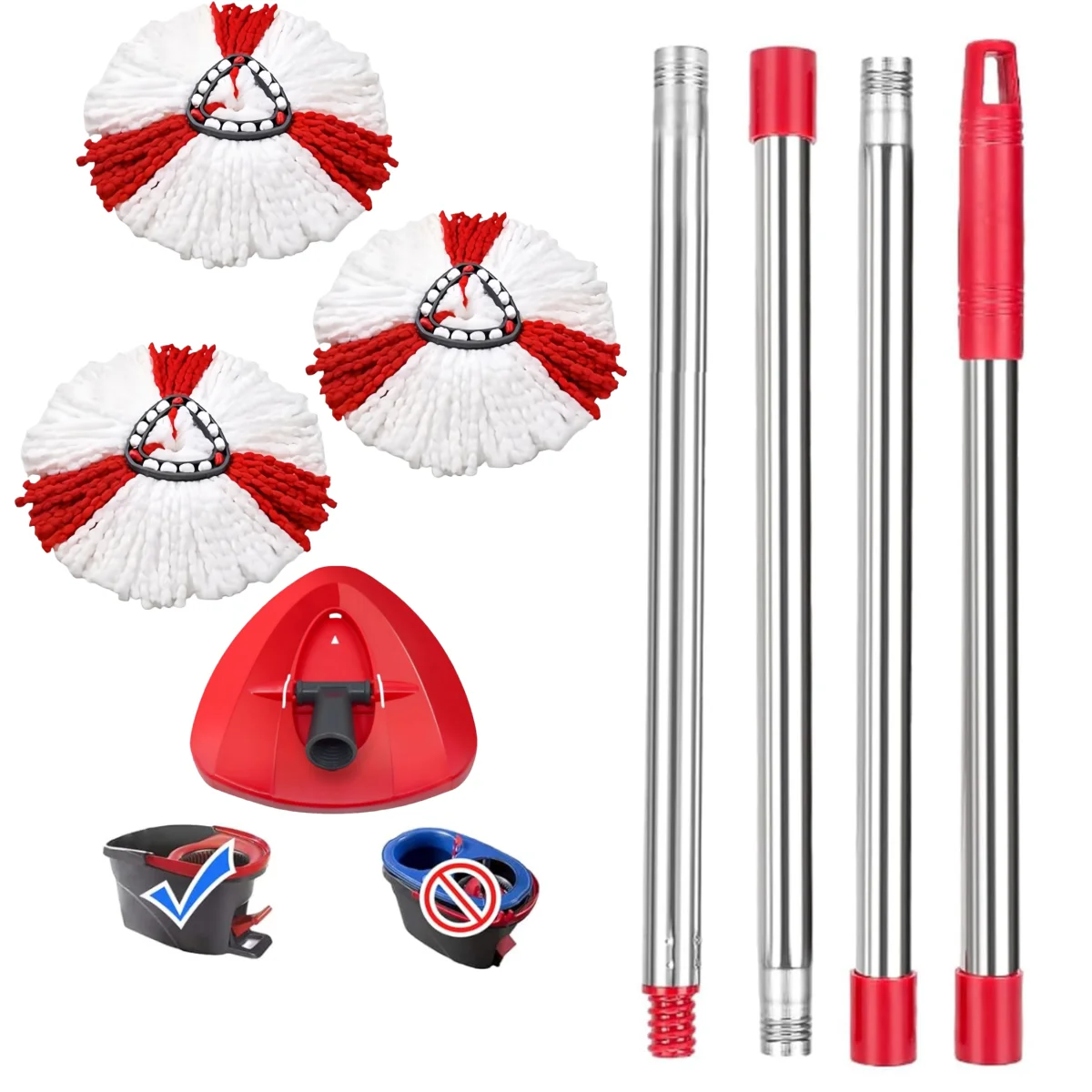 Vervangingen van microvezel dweilkoppen, centrifugehandgreep voor Vileda Turbo 1-tanksysteem, in hoogte verstelbare dweilstok, driehoekige dweilbasis