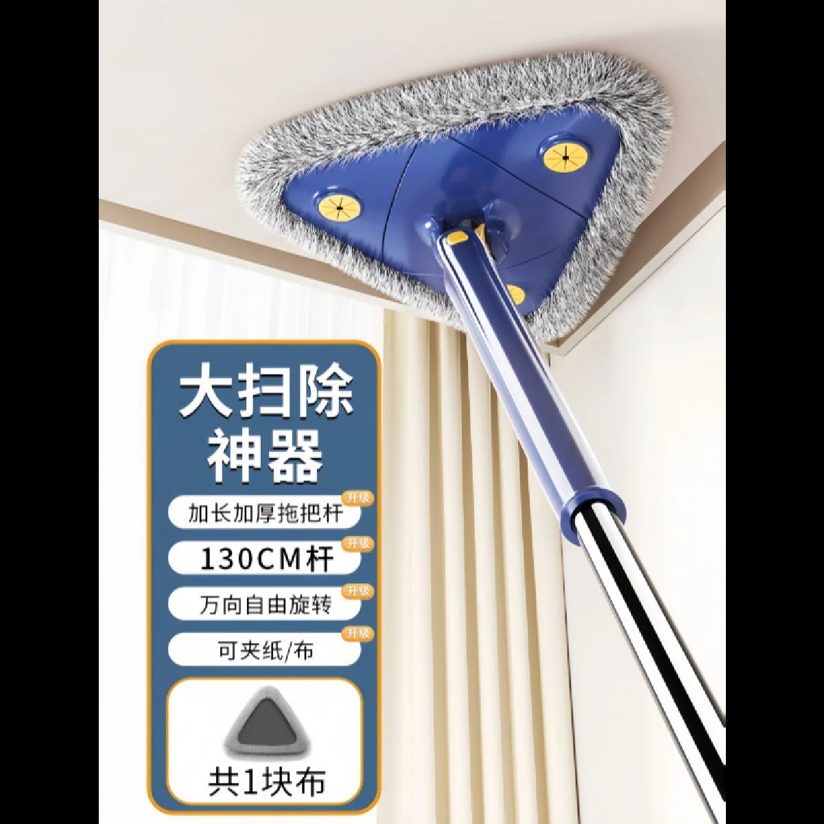 Wandmop met lange steel 360 ° Draaibare driehoekige microvezel wandreinigingsmop, verstelbare droge en natte stofzuigermop voor vloeren