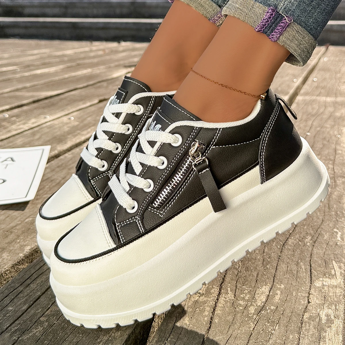 Elegante damesschoenen, hoogteverhogende damesschoenen, witte schoenen met leren bekleding, nieuwe lente sportschoenen met dikke zolen, platformsneakers