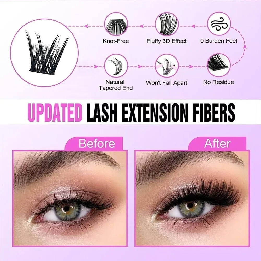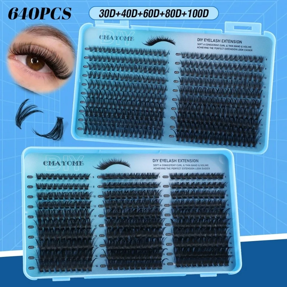 640 stuks 8-16mm lange nepwimpers, pluizige textuur, luchtige stijl, dikke volume, D-curl, DIY wimperverlengingsset