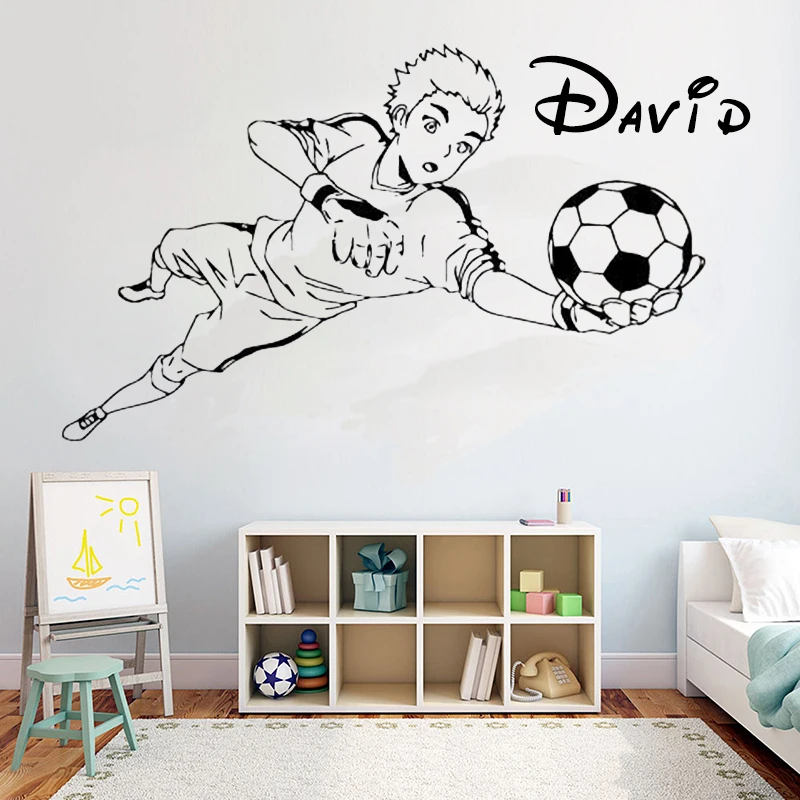 Voetbal Keeper Vinyl Muursticker Voetbalclub Jongens Kamer Decor Aangepaste Naam Muur Poster Voetbal Sport Vinyl A1-088