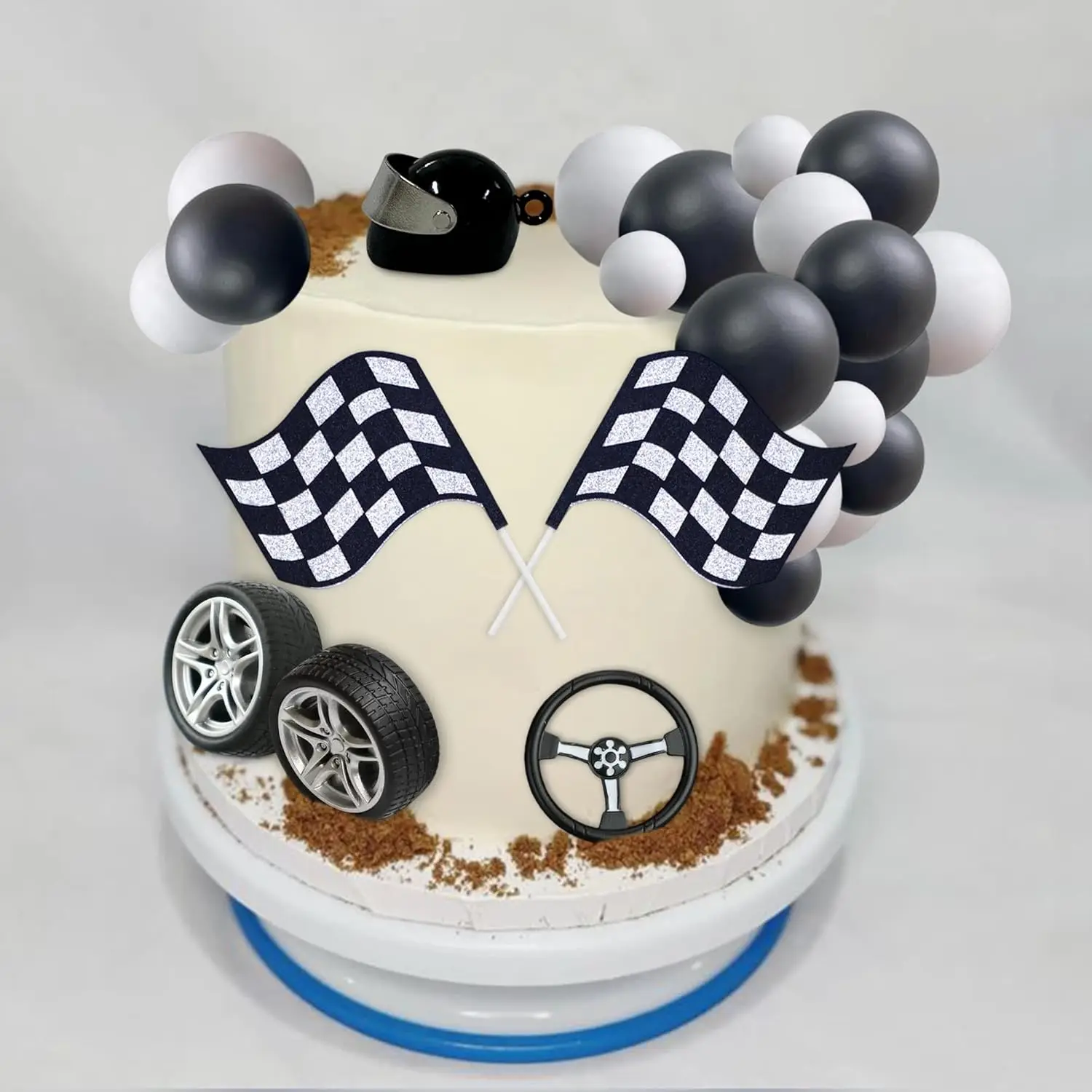 Racing Cake Toppers Raceauto Verjaardagstaart Decoraties voor Racewagen Geruite Vlag Verjaardag Jubileum Feestartikelen