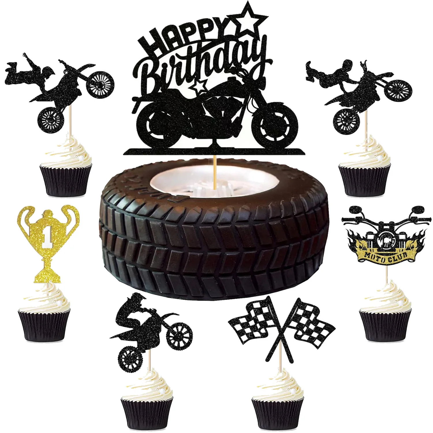 Crossmotor Feestdecoratie Gelukkige Verjaardag Cake Topper Cupcake Toppers Voor Jongens Mannen Motorrijder Racing Verjaardag Decoraties